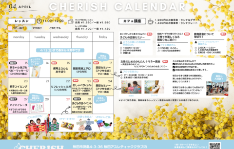 11月のCHERISH(チェリッシュ)カレンダーを更新しました♪秋田の子連れイベントは、CHERISHで決まり♡